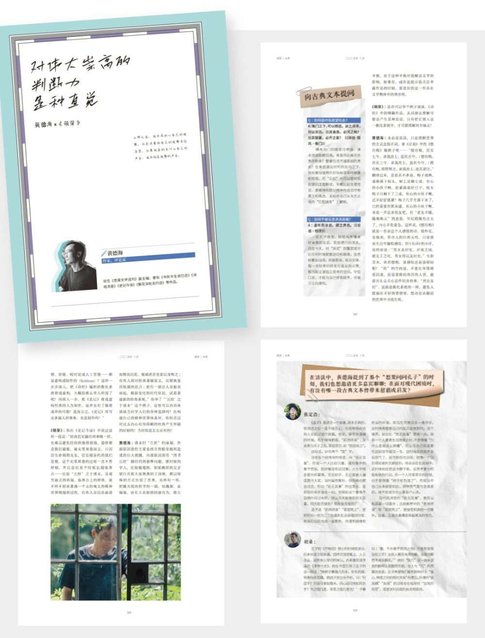 十月,我們邀請作家、評論家黃德海,聊聊在他的視野下,《詩經(jīng)》《論語》《史記》在歷史中是如何一層層地被賦予了不同的意義,這些經(jīng)典又以何種方式與我們的現(xiàn)代生活產(chǎn)生交集。他指出:“源遠才能流長,當代文學想擁有‘織體’般的深層意義,大概需要從疏接源頭開始。此外,張定浩、胡桑和庫里里也分享了他們在面對現(xiàn)代困境時,從古典文本中受到的慰藉與啟發(fā)。